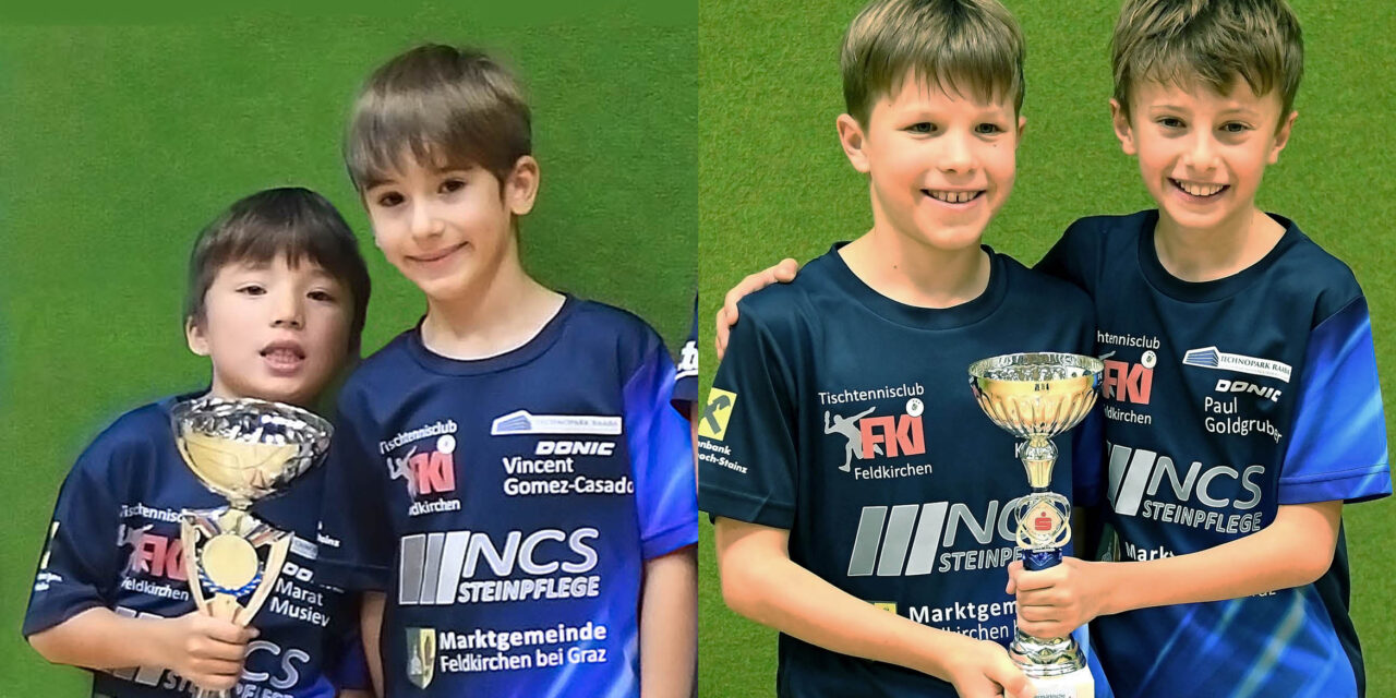 Vincent Gomez-Casado und Marat Musiev in der U11 sowie Daniel Kürzl und Paul Goldgruber in der U13 holten Silbermedaillen für den TTC Feldkirchen bei den steirischen Team-Meisterschaften in Kapfenberg.